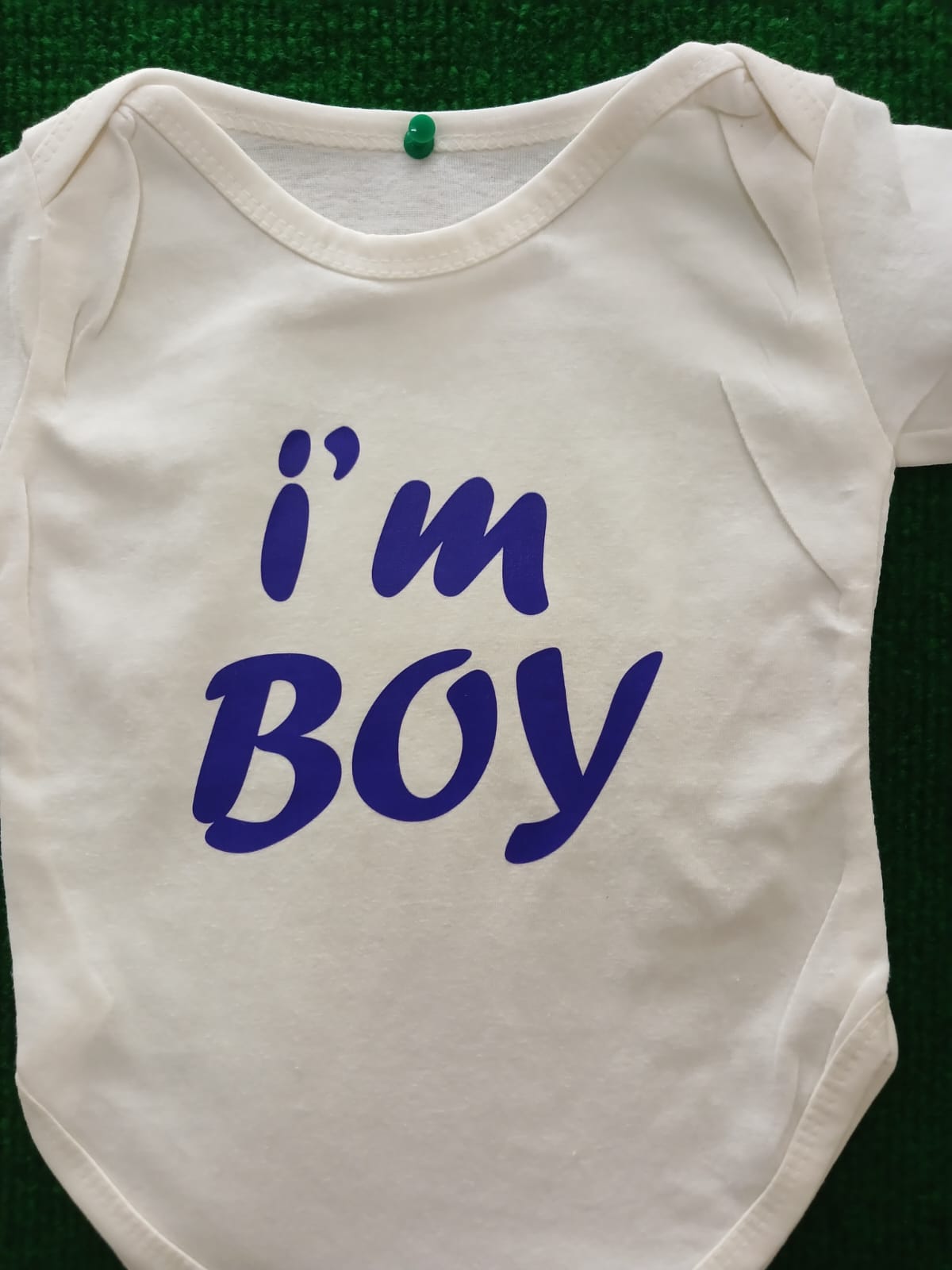 Baby Boy “I’m Boy” Cotton Romper – Short Sleeve Infant Bodysuit