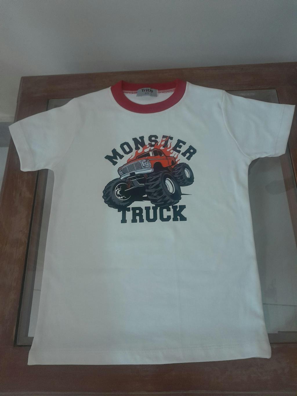 Cotton T-Shirt – Short Sleeve White Monster Truck Print