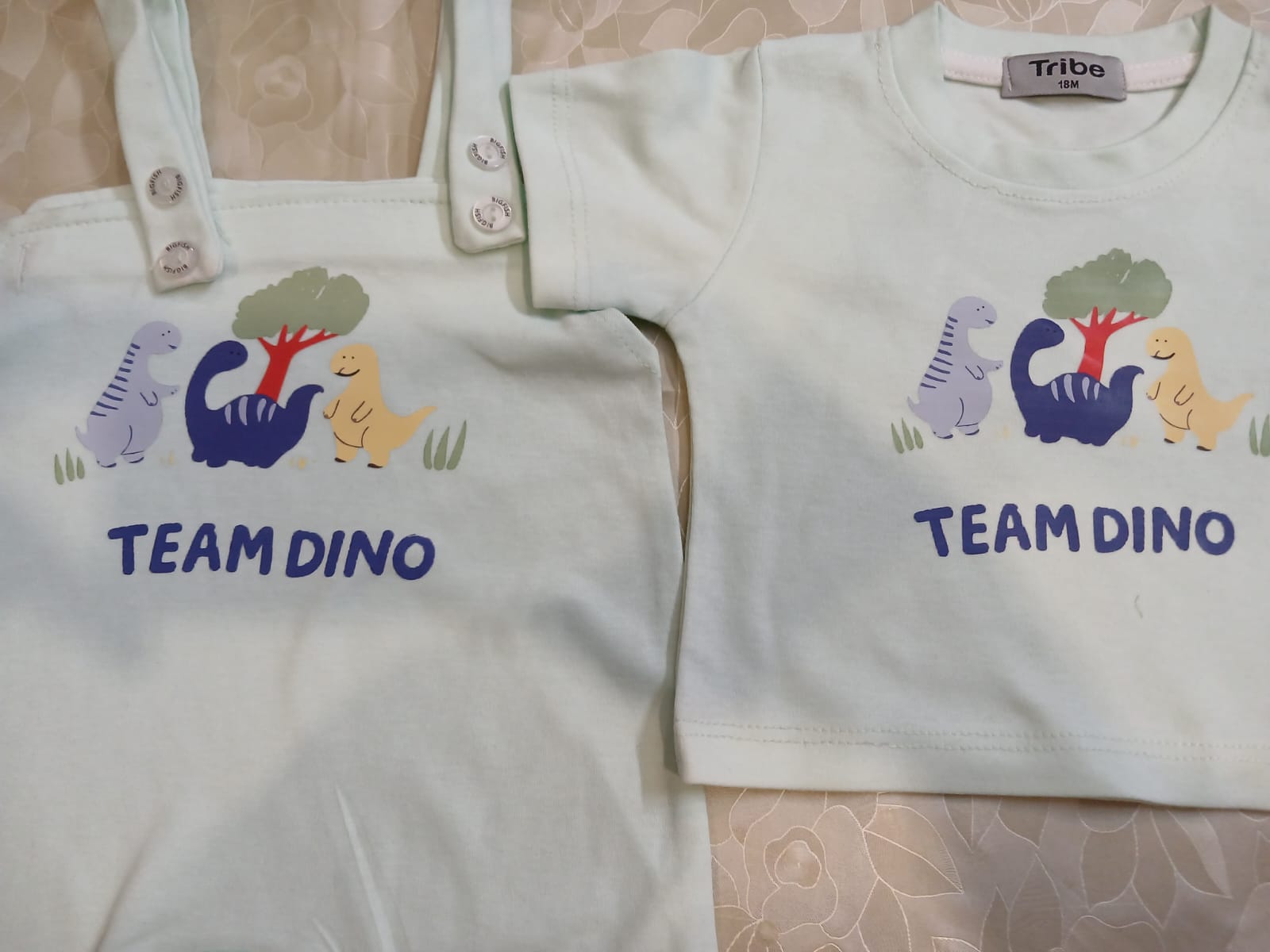Toddler Cotton Dungaree Romper Set with T-Shirt –Dino